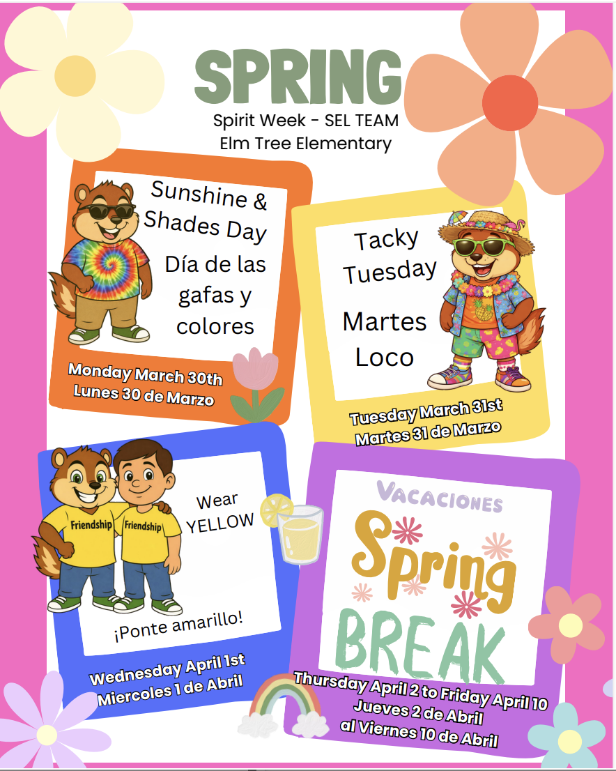 Spring Spirit Week March 30th to April 1st